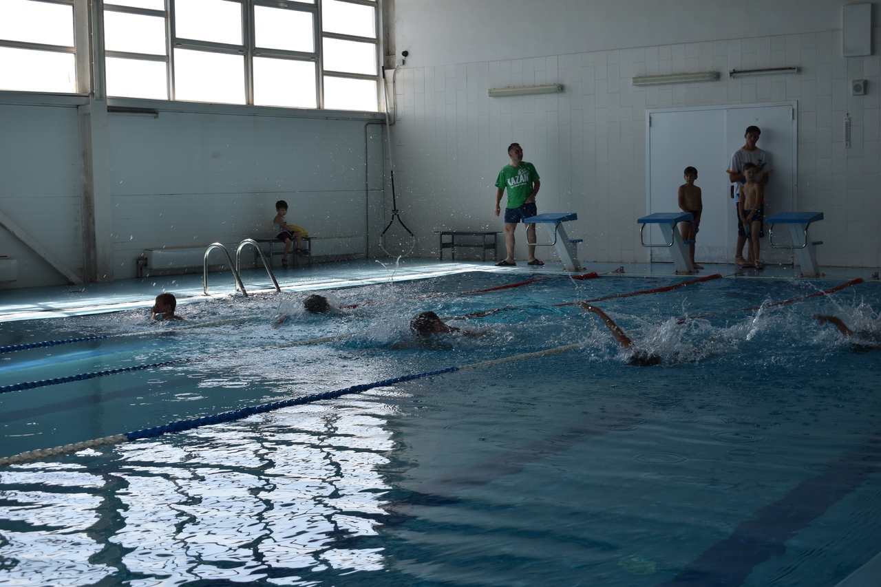 В этот день мерились силами участники соревнования по плаванию. Спортсмены состязались в трех заплывах