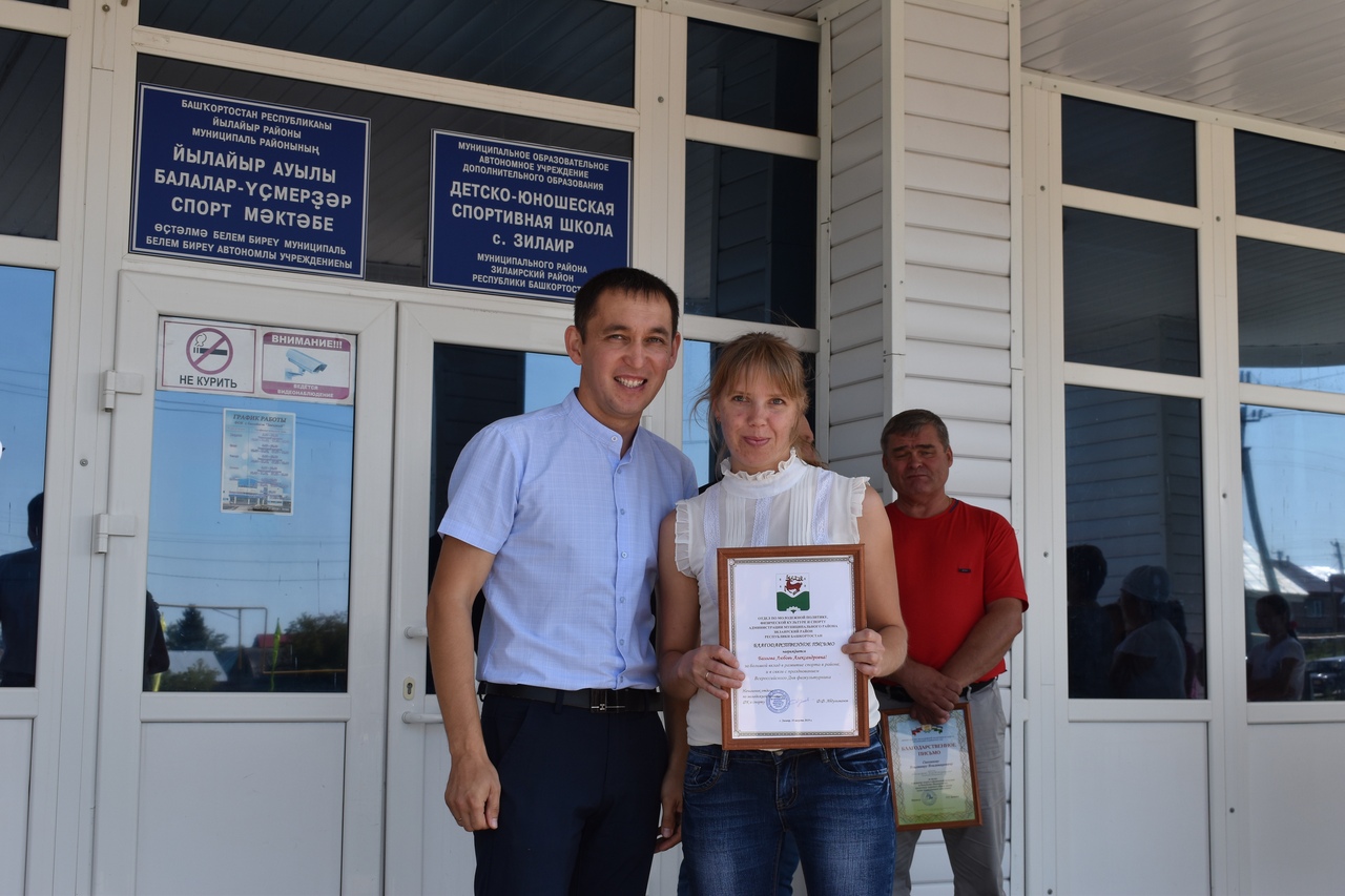 Стало доброй традицией в день физкультурника чествовать лучшего спортсмена и лучшего тренера. Лучшим спортсменом 2019 года была признана воспитанница детской юношеской спортивной школы Шарипова Айзиля Венеровна. Она стала призером сельских спортивных игр Республики Башкортостан по шашкам, многократным призером и Республиканских и зональных турниров по баскетболу в составе женской сборной команды района.